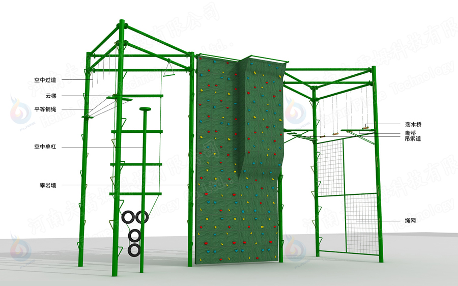 高空心理行為訓(xùn)練是一種綜合性的活動,宜設(shè)有巨人梯/天梯、攀巖、高空相依、天使之手、瀘定橋等器材,能夠模擬各種危險工作環(huán)境,開展心理適應(yīng)能力訓(xùn)練和主觀感受以及反應(yīng)能力等心理測試。高空心理行為訓(xùn)練設(shè)施下面應(yīng)配有足夠厚度的海綿墊。
